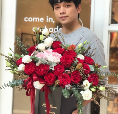 Giỏ hoa Hồng Cam + Cúc Mẫu đơn