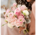 Những bông cát tường khoe sắc với màu trắng, tím, hồng bên những chồi nụ vươn lên mạnh mẽ. Và những đóa hoa mao lương rất đẹp, rất lạ. Những bông hoa được những chùm Mimoza che chở, như vòng tay hạnh phúc của gia đình bé nhỏ của hai người đang được vun đắp từ hôm nay.